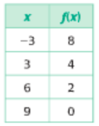 The linear function containing the values f(0)=3 and f(8)=6