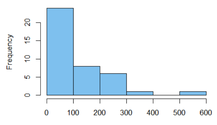 Use the shape of the distribution to compare the mean and median. Are the mean and median equal? If not, which is greater?