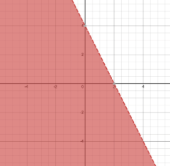 Given the equation y >= -x + 2 are you going to have a dotted or solid line, and are you going to shade above or below the line?