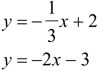 A line can be found by the intersection of two planes. Two plane equations are shown below. Find a linear equation (in any form) from the two plane equations below