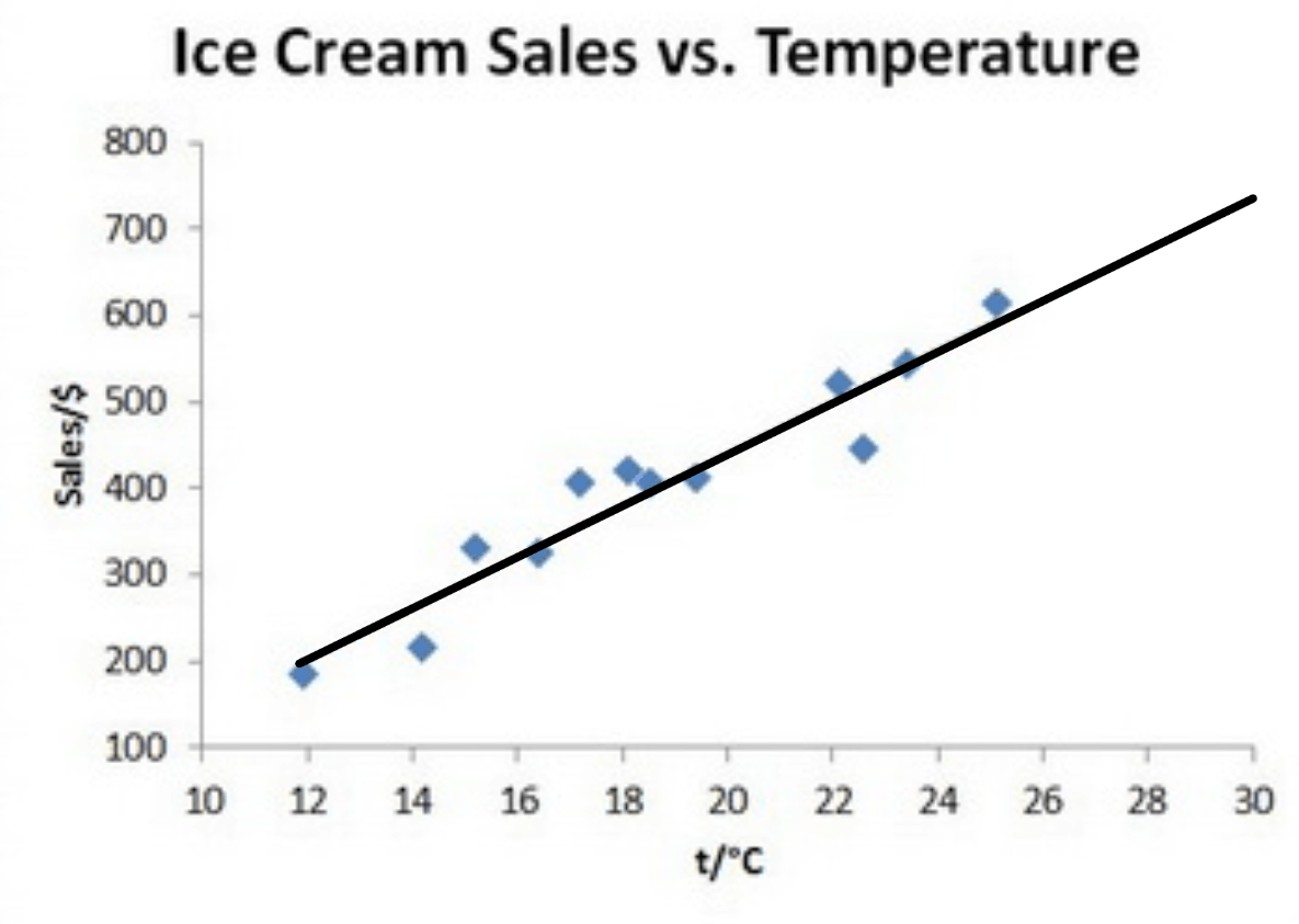 The trend line equation relating study time (x, hours) and grade on an exam (y, %) is shown below