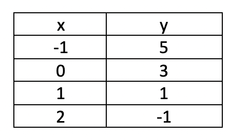 Write the equation of the line that would create this table: