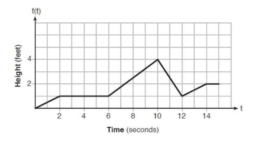 The graph of  f(t) models the height, in feet, that a bee is flying above the ground with respect to the time it traveled in t seconds.