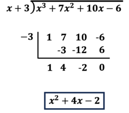 Using synthetic division divide  x^3+7x^2+10x-6 by x+3.