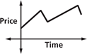 There is an initial price that increases, decreases, increases, and decreases slightly