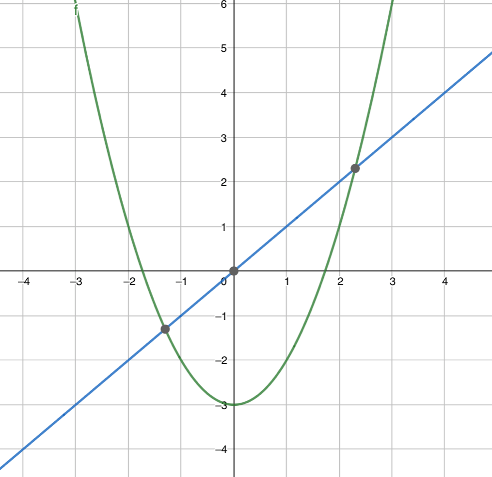 Approximately (-1.3, -1.3) and (2.3, 2.3)