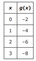The equation of a linear function q(x) and table of values of a linear function g(x) are below.