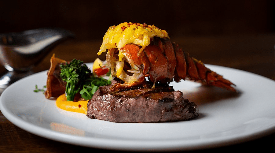 What is the popular restaurant term for a dish that combines a cut of beef steak with seafood or shellfish, such as lobster or shrimp?