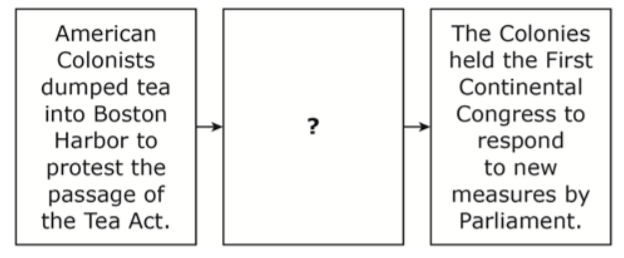 What is: Great Britain’s Parliament closes Boston’s port and passes unfair laws.