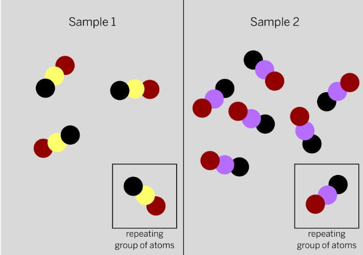 What is the properties will likely be different because the repeating groups of atoms that make up each sample are different.