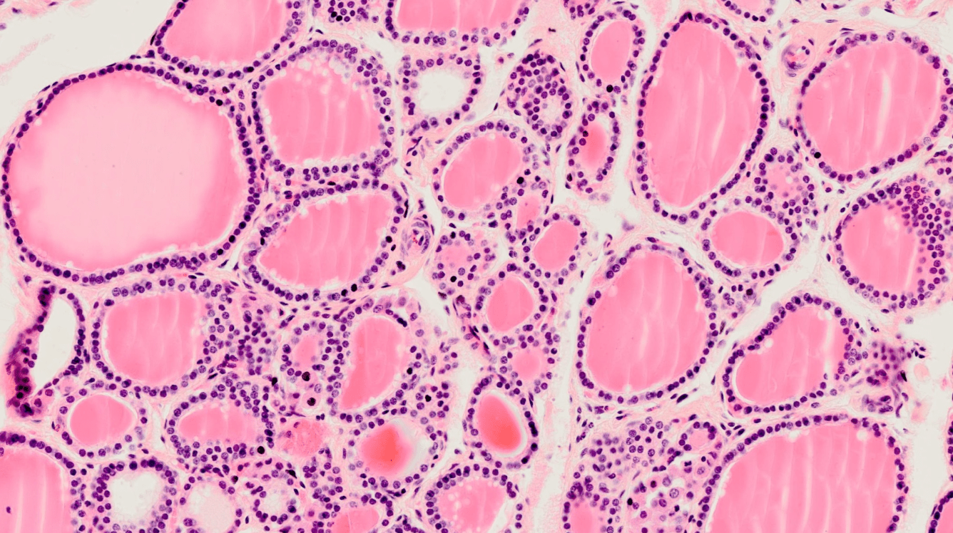 Das Epithel dieser Drüse kann, je nach Aktivitätsgrad, flach oder kubisch sein.