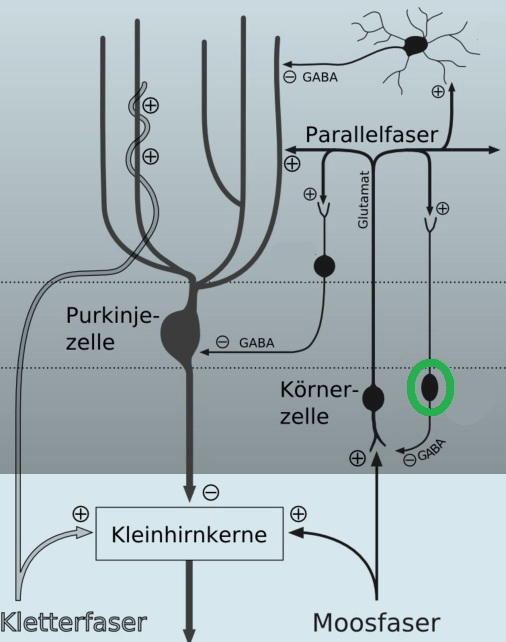 Diese Interneurone liegen im Str. granulosum des Kleinhirns. Sie projizieren GABAerg auf Körnerzellen.