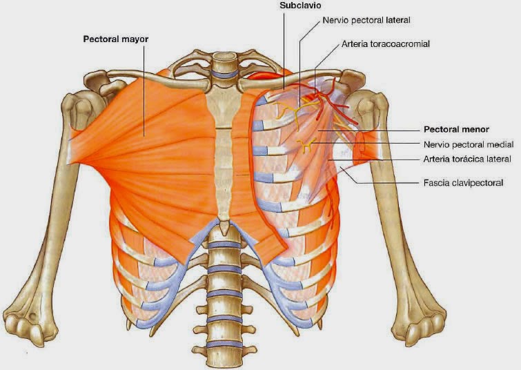 Dorsal ancho, deltoides, redondo mayor, pectoral mayor.