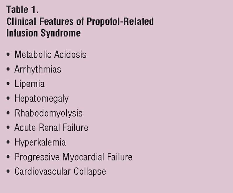 Name three characteristics of propofol infusion syndrome