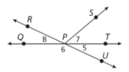 True or False: ∠TPU and ∠QPR are vertical angles.
