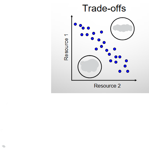In tradeoffs, these are the two possibilities we can see happen on a plot of resource 1 vs resource 2