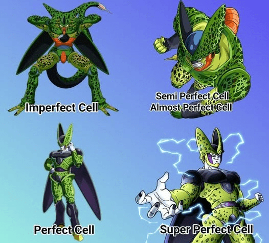 Cell's forms are: Imperfect Cell, Semi Perfect Cell, Perfect Cell and Super Perfect Cell.