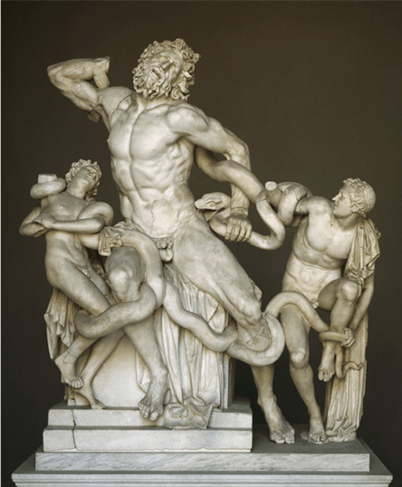 Berømt skulpturgruppe, som blev fundet i Rom i 1506 e.Kr. og som blev kendt for sine voldsomme følelsesudbrud.