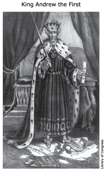 Jackson’s opponents accused him of acting like this, shown in a famous 1833 political cartoon.