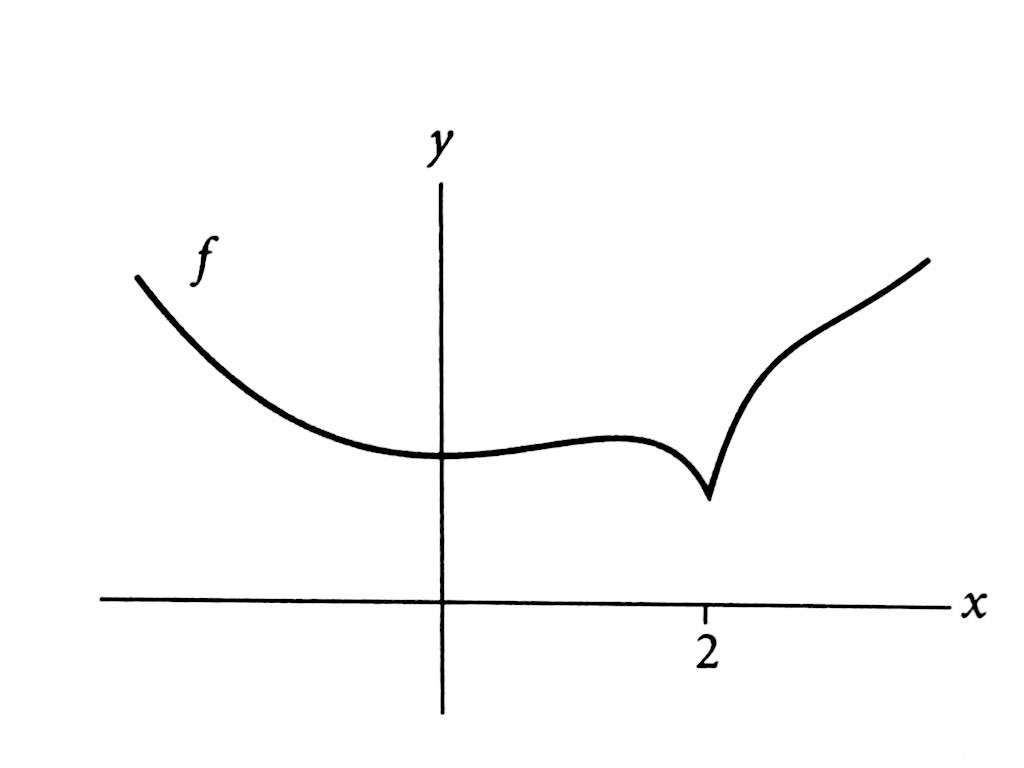 What is, f is continuous and differentiable everywhere except at the point where x=2?