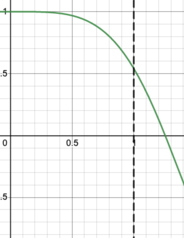 It's the position of a model train along a linear track with position 0 at t = 0 and velocity v(t) given below at time t = 1/3.