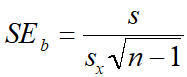 The formula we use to estimate the spread of the sampling distribution of the slope of a regression line when we do not know sigma for the population regression line.