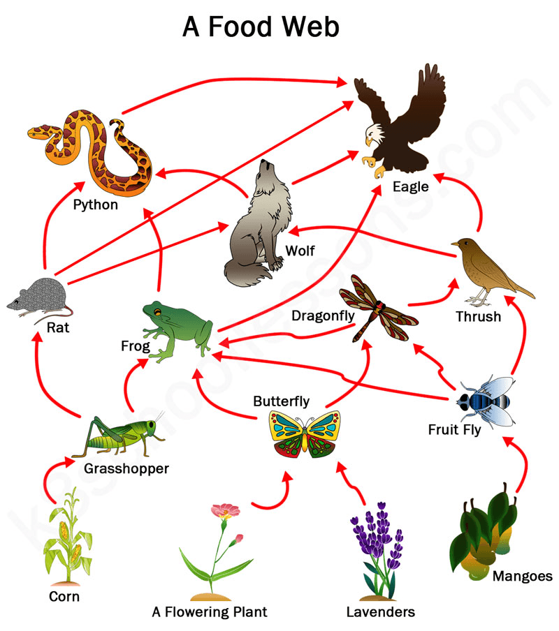 A model of an interlocking pattern of food chains that depicts the flow of energy and nutrients in two or more food chains.