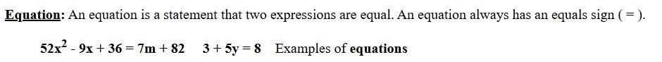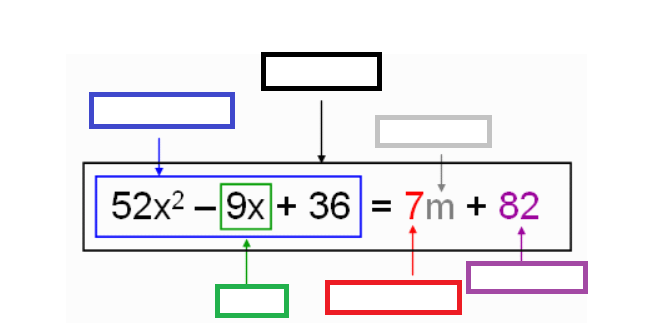 Coefficient, Constant, Equation, Expression, Term, Variable