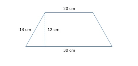 A = 1/2 x H x (B1 + B2) OR A = H x (B1 + B2) / 2