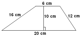A= 1/2 (b1+b2)*h A= 1/2 (6+20)*10 A= 130 cm^2