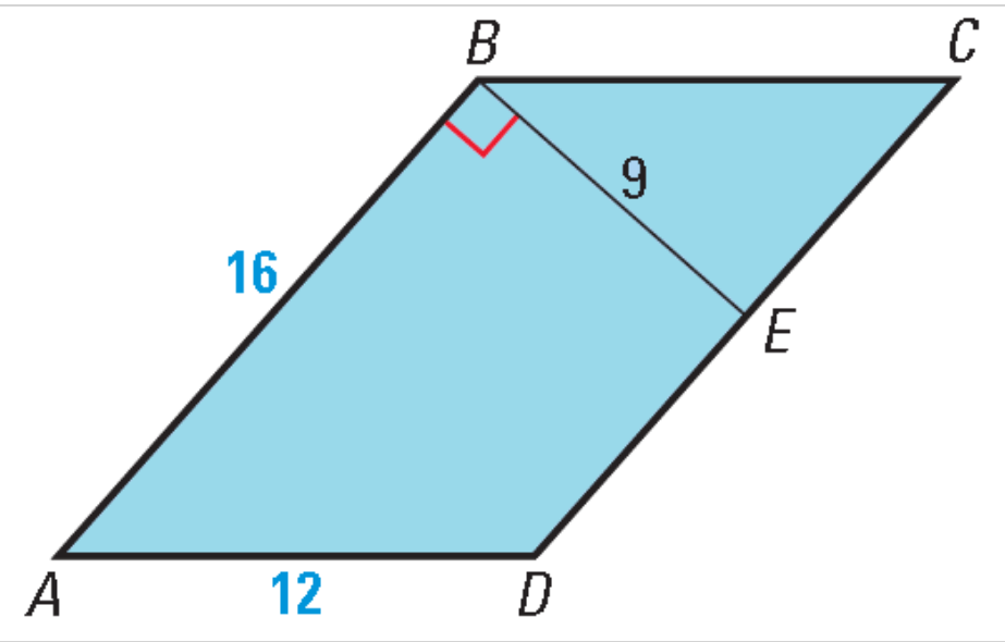 If a parallelogram has an area of 28 ft and a base of 7ft, what is the height?