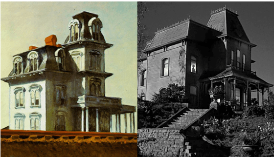 The Bates house in this 1960 film reproduces, with simplifications, the already suitably ominous Victorian in Hopper’s “House by the Railroad” (1925).