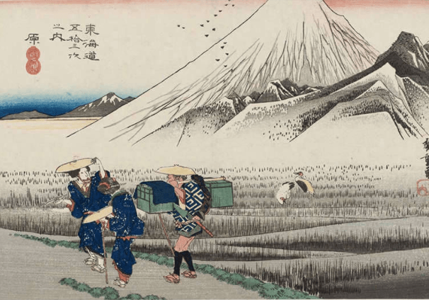 This Japanese genre of woodblocks and paintings often depicted Kabuki Actors, Sumo Wrestlers, Landscapes, and Historical Scenes.