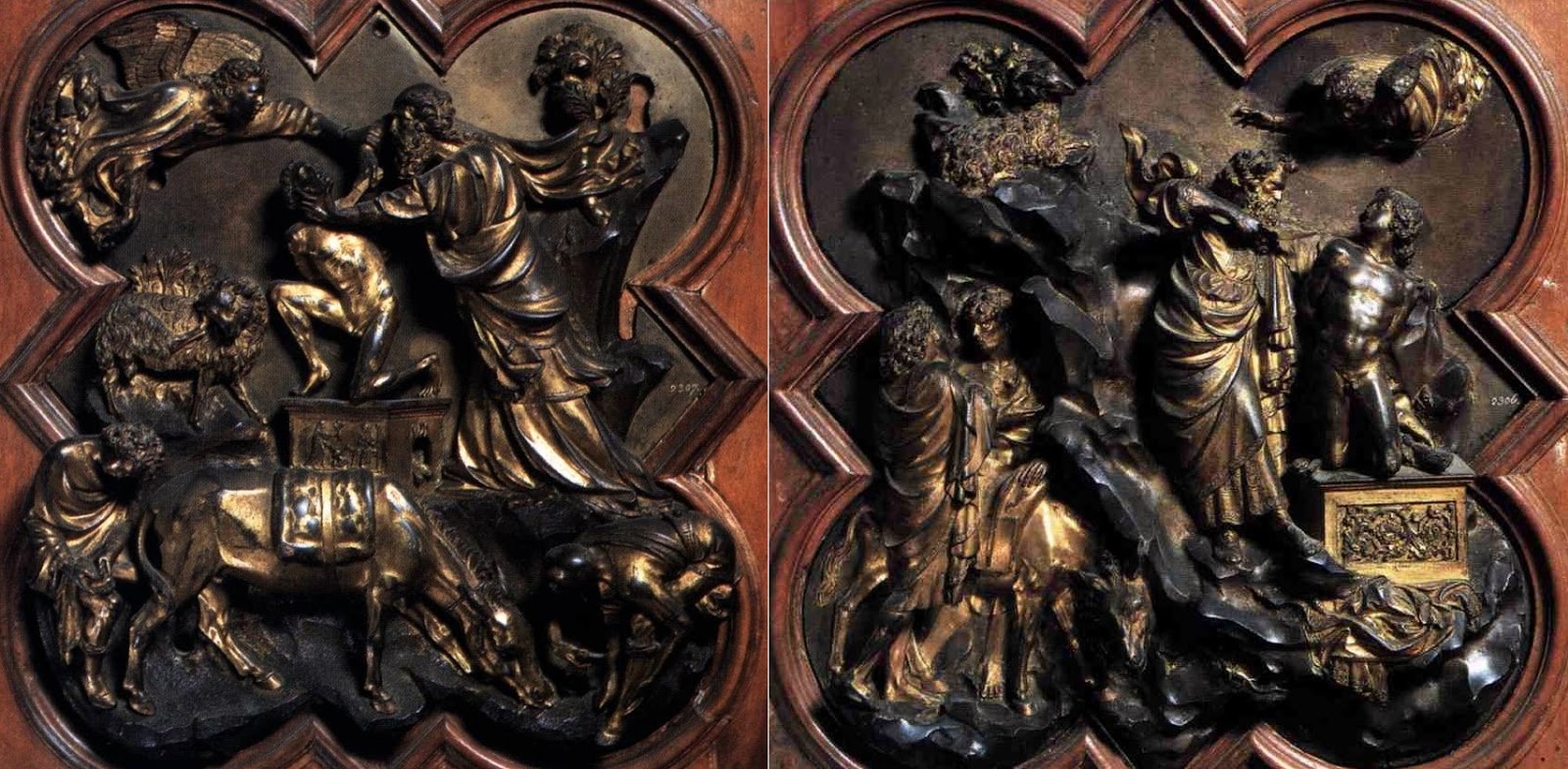 Which artist won the contest of the Sacrifice of Isaac door casting?
