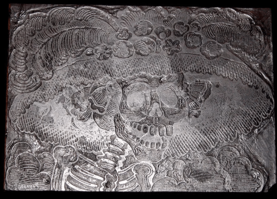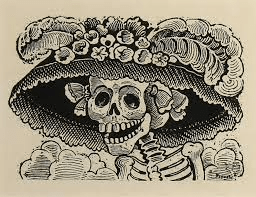 What kind of artistic method was used in the creation of la Catrina? (which medium)