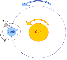 The Earth revolves around the Sun as the Moon rotates around the Sun.