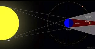 (acontecimiento durante el cual la combra la Luna aparence sobre la superficie de la Tierra.)