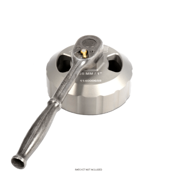 A socket wrench with an oil filter socket attachment