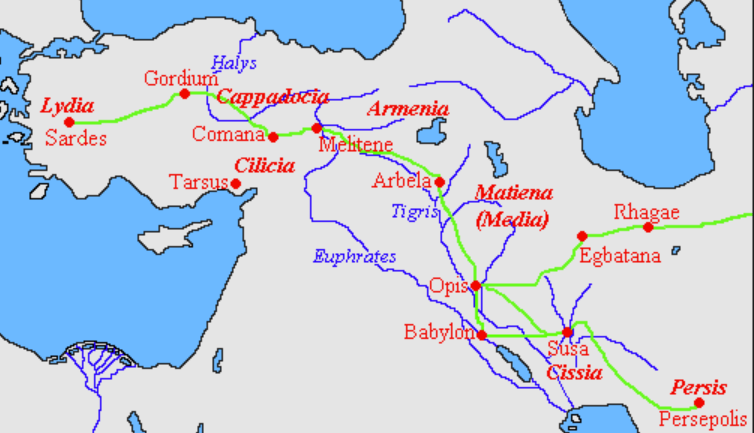 The Persian Royal Roads were famously said to have stretched from THIS city in Turkey to THIS city in Iran