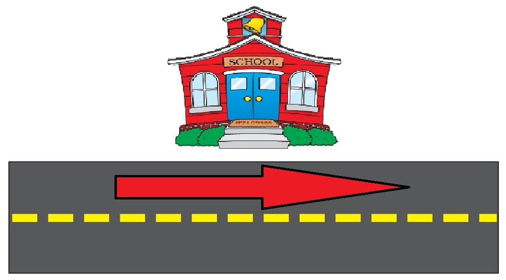 Go past the school.