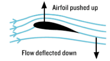In this theory of lift, air flows over the top and bottom of the airfoil and is deflected downward and the airfoil goes upward.