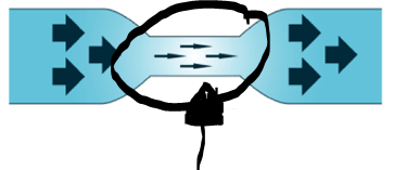 Air is moving faster through this Venturi Tube, therefore the pressure in this area is________