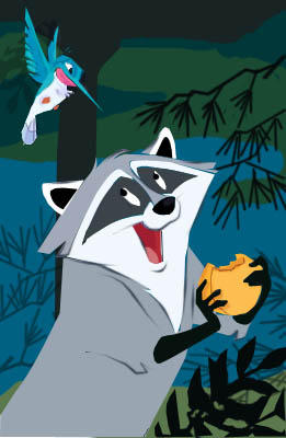 Named Meeko and Flit, the raccoon and hummingbird provide some comedy to the movie.