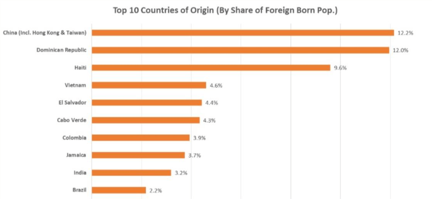 In Boston, there are a lot of immigrants. What countries do most people here come from? (Top 3)
