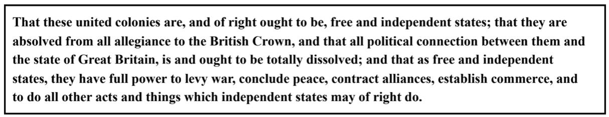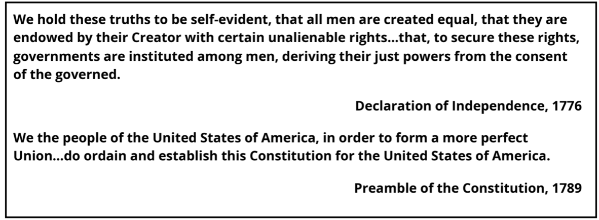 These excerpts are from the Declaration of Independence and the Preamble to the United States Constitution.