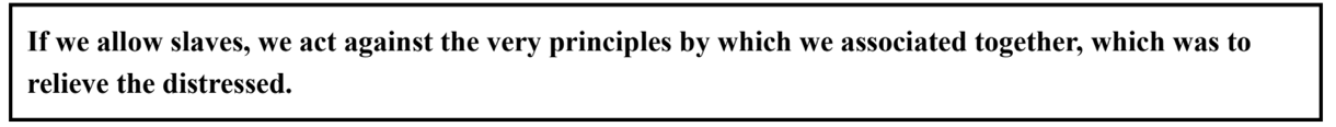 D “Taxes should be levied on us by our colonial legislatures, not Great Britain.”