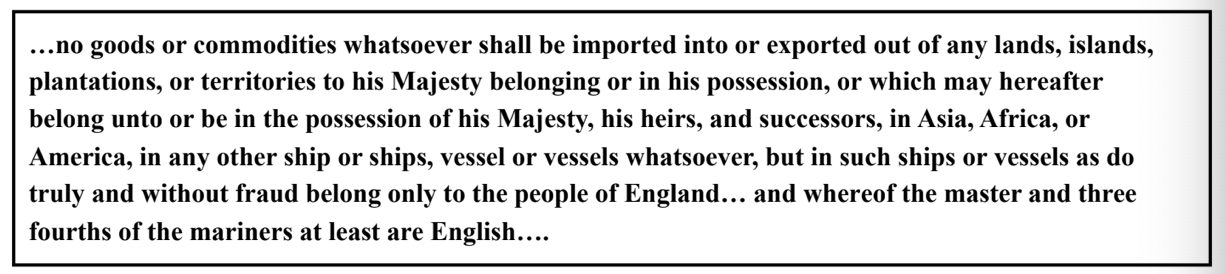D Parliament wanted to ensure that the wealth generated in the colonies only benefited Great Britain.