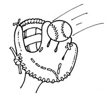 Sedrick catches a baseball with his mitt before it falls to the ground.
