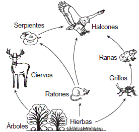El siguiente diagrama representa interacciones que ocurren entre algunos organismos en un ecosistema.
