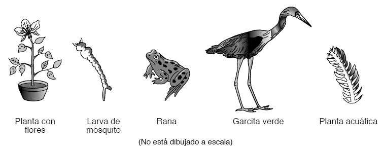 2. Solamente la planta con flores, la garcita verde y la planta acuática realizan la fotosíntesis.